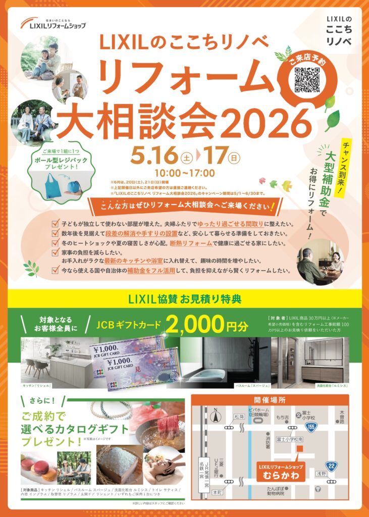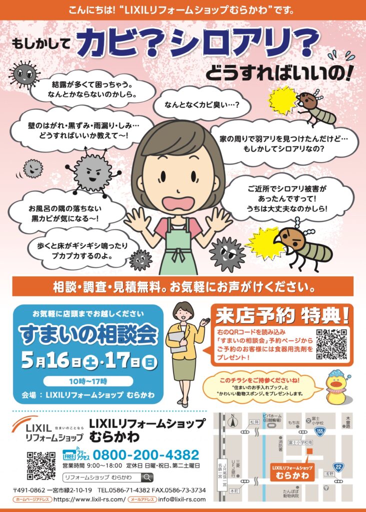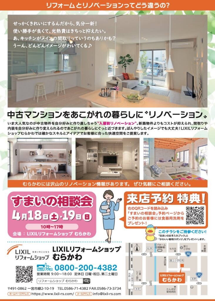 2024年1月より名鉄百貨店一宮店の閉店に伴い、東口入口前で開催をしていました「すまいの相談会」は、LIXILリフォームショップむらかわの店舗にて「すまいの相談会」を毎月開催をしております。