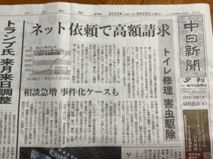 スッゴク残念です。 2025/9/30 リフォーム工事 こんな記事が中日新聞に掲載されました。 残念です。( ;∀;) 私は同業者ではありません。 が、お客様から見たら同業者なのかもしれません。 境目は分かりませんものね。 お客様へ==良心の有る会社もたくさんあります。(^^)v